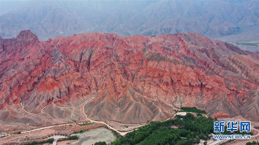 這是6月15日拍攝的位于貴德縣境內的丹霞地貌(無人機照片)。夏日時節,位于青海省海南藏族自治州的貴德縣迎來連日降雨,多彩的丹霞地貌在雨后色澤愈發鮮艷,在云霧的籠罩下形成一幅幅獨特畫卷。新華社記者 吳剛 攝