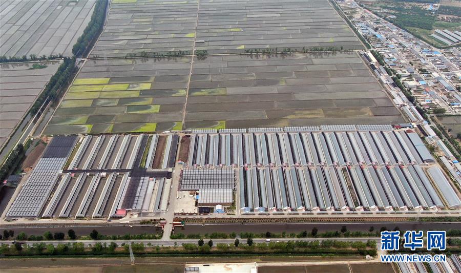 在遼寧省盤錦市大洼區(qū)新興鎮(zhèn)拍攝的劉廣會(huì)經(jīng)營的現(xiàn)代化育苗大棚(6月9日攝,無人機(jī)照片)。新華社記者 楊青 攝