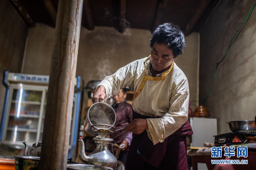 清晨,藏族漢子斯那定主為客人準備早餐(3月15日攝)。新華社記者 胡超 攝