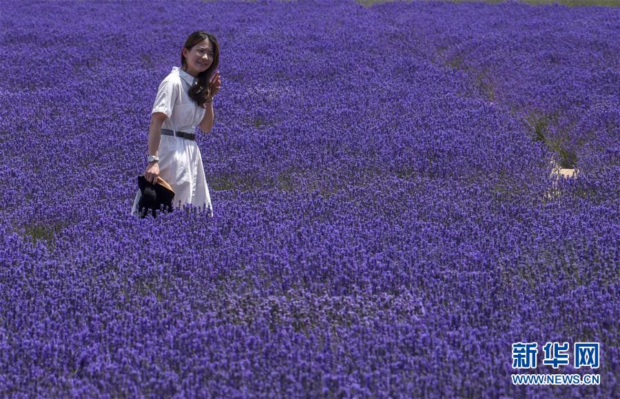 游客在霍城縣解憂公主薰衣草園內游玩(6月16日攝)。新華社記者 趙戈 攝