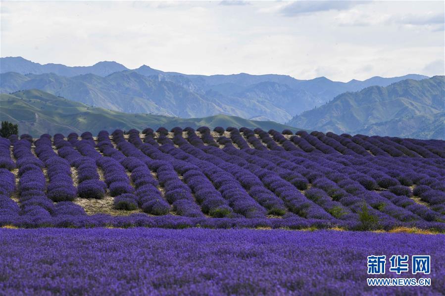 這是霍城縣蘆草溝鎮四宮村的一處薰衣草花田(6月16日攝)。新華社記者 趙戈 攝