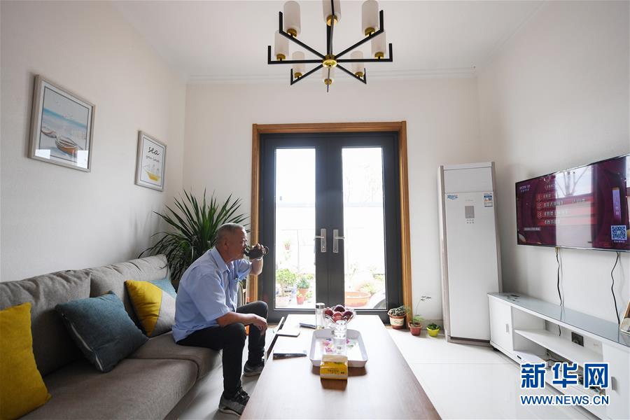 6月20日,在泗陽縣愛園鎮松張口社區,65歲的楊新成在家中看電視。近年來,江蘇省宿遷市泗陽縣大力推進農房改善工作,提高群眾生活品質。愛園鎮松張口社區農房改善項目將公共空間治理與農房改善工作相結合,抓好建筑質量的同時,注重小區整體環境建設,打造風景如畫的新農村。新華社記者季春鵬攝