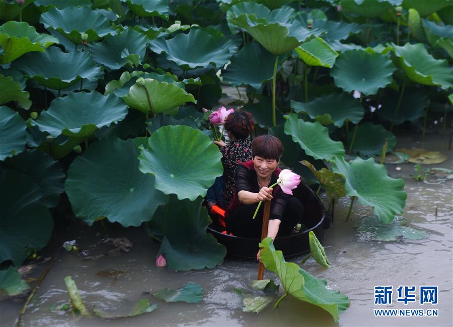 6月23日,東林鎮村民劃著菱桶采收荷花和蓮蓬。當日,浙江省湖州市東林鎮在泉心村荷花池舉辦“慶端午劃菱桶”趣味活動。村民們劃著菱桶在水面上你追我趕,同時采收荷花和蓮蓬,呈現出水鄉特有的端午節日氛圍。在河網密布的東林鎮,菱桶是水鄉家家戶戶都有的一種傳統水上勞動工具,村民在捕魚、采菱、采荷時都要用到。新華社記者徐昱攝