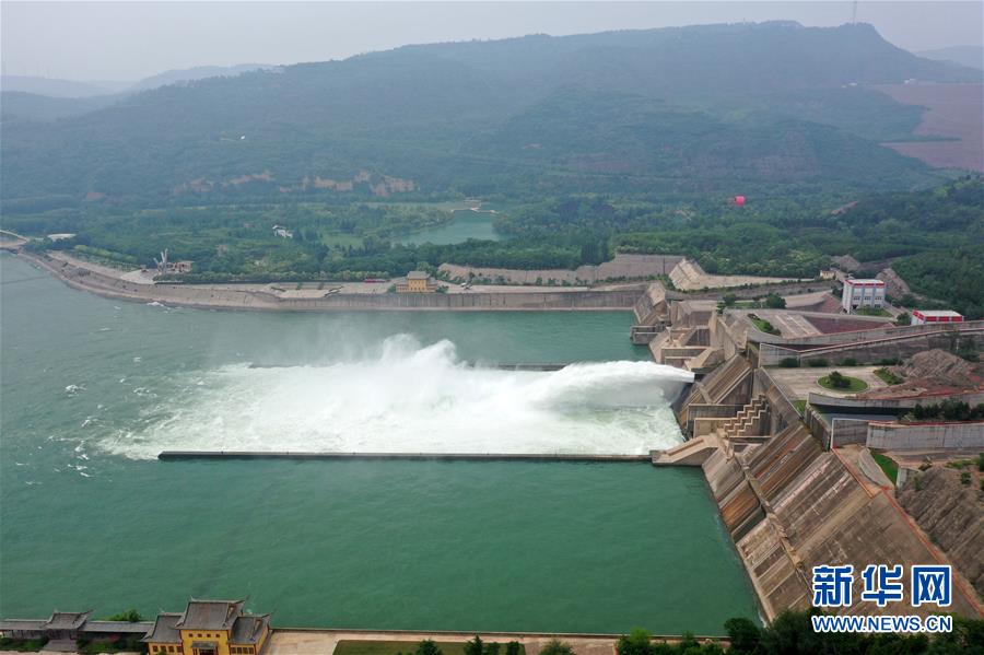 這是6月23日拍攝的黃河小浪底水利樞紐工程(無人機照片)。近日,黃河小浪底水利樞紐工程開啟洪水調度運用模式,從空中俯瞰,蔚為壯觀。新華社記者馮大鵬攝