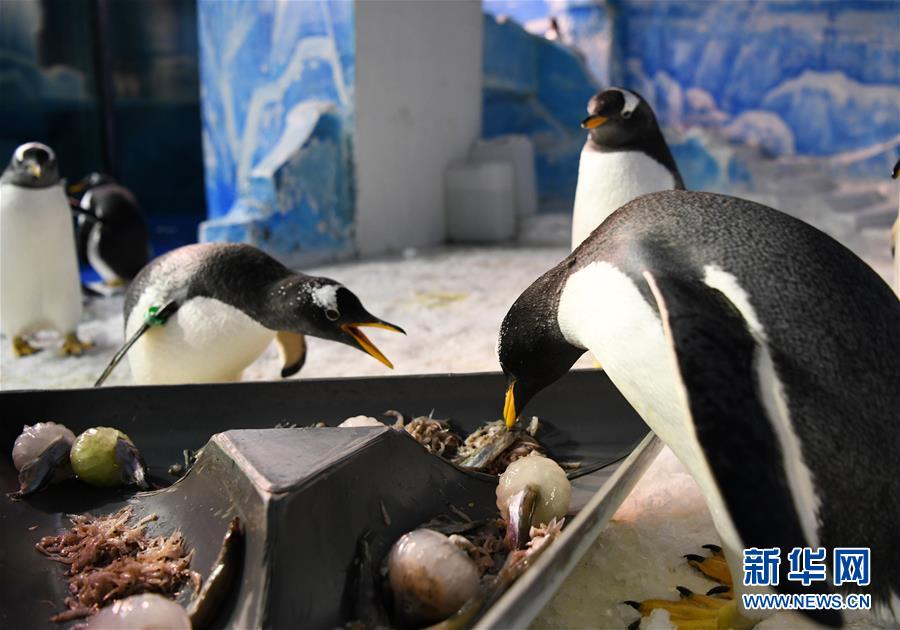 6月24日,哈爾濱極地館的企鵝在品嘗“魚粽”。當日,哈爾濱極地館的工作人員特地準備了“魚粽”“肉粽”,讓生活在這里的極地動物也品嘗一下端午美食。新華社記者王建威攝