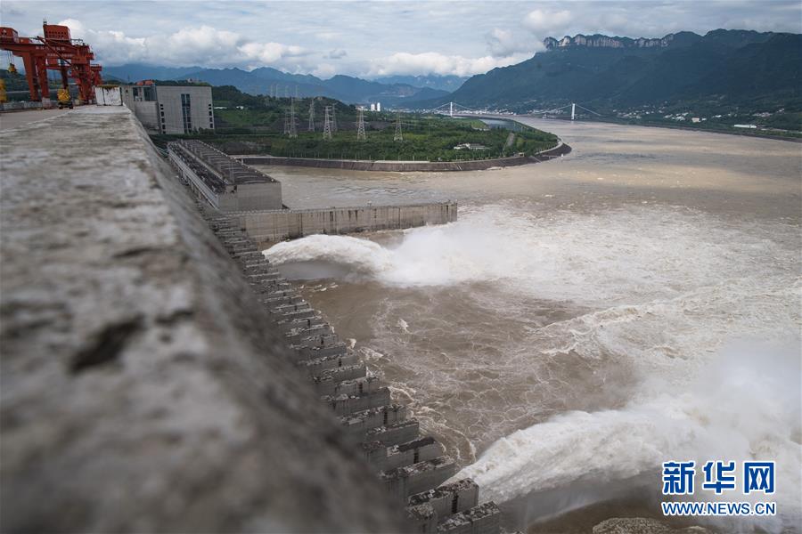 6月29日,三峽樞紐開啟泄洪孔泄洪。受長江中上游強降雨影響,進入三峽水庫的水量持續增多。為騰出一定庫容迎接近期可能到來的洪水,三峽樞紐于6月29日上午開啟兩個泄洪孔,加大下泄流量。這是三峽樞紐今年首次泄洪。28日14時,三峽水庫入庫流量達4萬立方米/秒,是27日14時的兩倍。為應對此輪來水,長江防總要求將三峽水庫下泄流量上調至日均3.5萬立方米/秒。新華社發(鄭家裕攝)