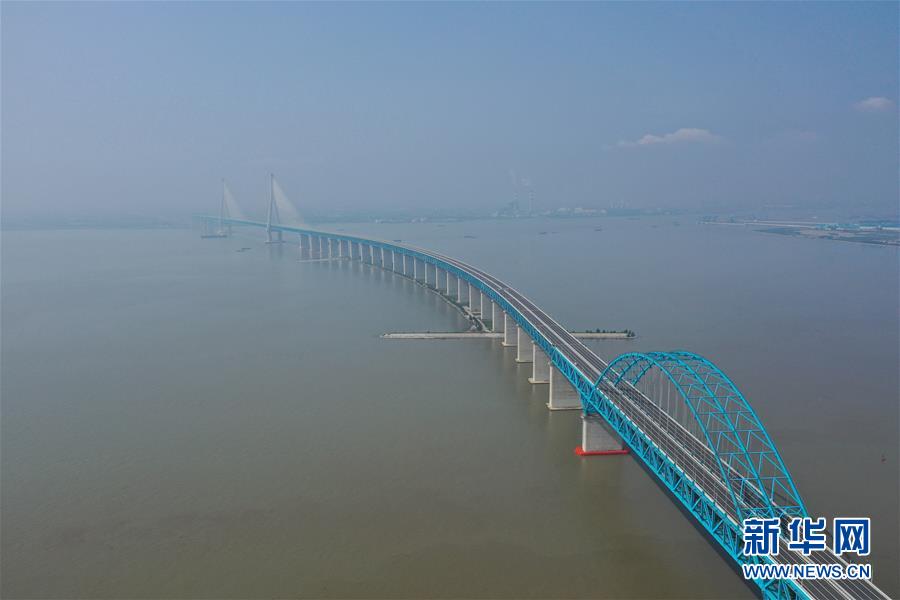 滬蘇通長江公鐵大橋(6月30日攝,無人機照片)。即將于7月1日通車的滬蘇通長江公鐵大橋北起江蘇南通,南至江蘇張家港,公鐵合建跨江正橋全長5827米,為集合高速公路、客貨混線鐵路、高速鐵路的“三合一”過江通道,建成通車后將有效促進長三角城市群跨江融合、協同發展。新華社記者季春鵬攝