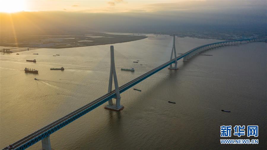 滬蘇通長江公鐵大橋(6月29日攝,無人機照片)。即將于7月1日通車的滬蘇通長江公鐵大橋北起江蘇南通,南至江蘇張家港,公鐵合建跨江正橋全長5827米,為集合高速公路、客貨混線鐵路、高速鐵路的“三合一”過江通道,建成通車后將有效促進長三角城市群跨江融合、協同發展。新華社記者李博攝