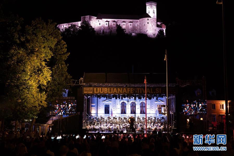7月1日,樂手們在斯洛文尼亞首都盧布爾雅那舉行的藝術節開幕式上演出。當日,第68屆盧布爾雅那藝術節拉開帷幕。新華社記者彭立軍攝