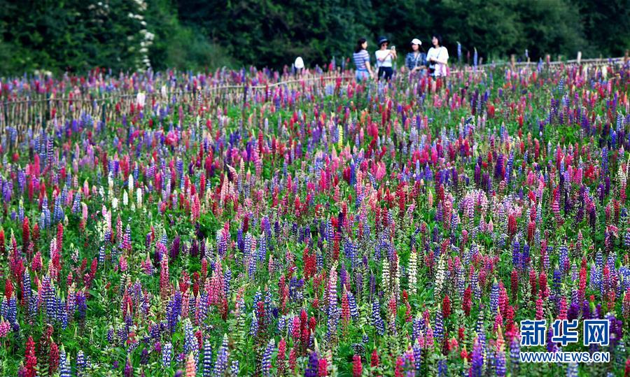 游客在陜西太白縣咀頭鎮七里川村的魯冰花產業園內觀光游覽(7月4日攝)。近日,陜西省寶雞市太白縣咀頭鎮七里川村魯冰花產業園內的魯冰花、金雞菊、藍香芥等花卉競相綻放,吸引大批游客前來參觀。新華社記者劉瀟攝