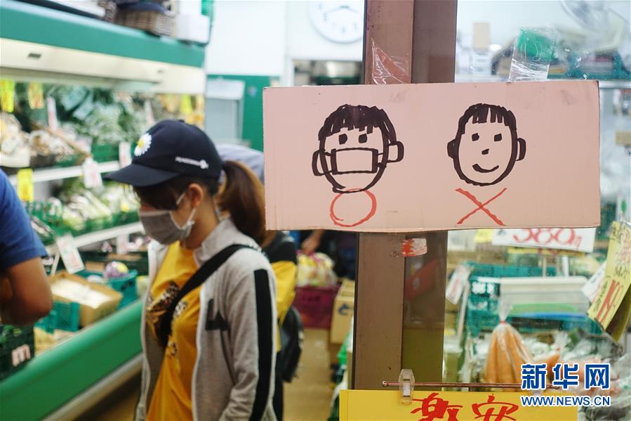 7月5日,在日本東京,一間商鋪門口貼著簡易標識,提示顧客戴口罩入場購物。據日本廣播協會電視臺5日統計,截至當地時間22時(北京時間21時),日本當日新增新冠確診病例208例,連續3天單日新增超過200例,目前累計確診19822例,累計死亡977例。新華社記者杜瀟逸攝