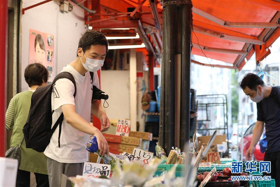 7月5日,在日本東京,人們戴口罩選購蔬果。據日本廣播協會電視臺5日統計,截至當地時間22時(北京時間21時),日本當日新增新冠確診病例208例,連續3天單日新增超過200例,目前累計確診19822例,累計死亡977例。新華社記者杜瀟逸攝