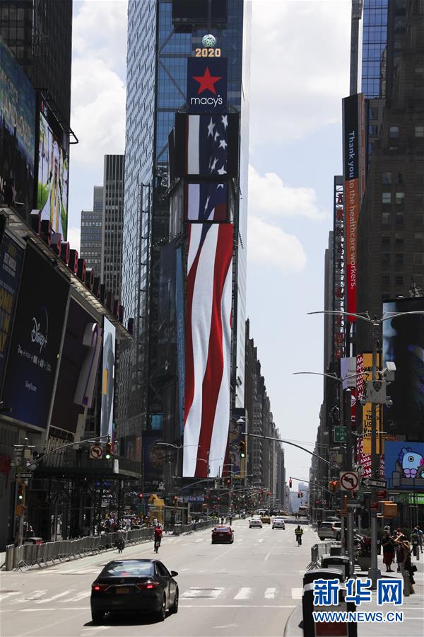 7月4日,美國紐約時報廣場上的行人和車輛稀少。當日是美國獨立日,美國多地疫情仍面臨嚴峻形勢。美國約翰斯·霍普金斯大學實時統計數據顯示,美國累計新冠確診病例4日已超過280萬例。新華社記者王迎攝