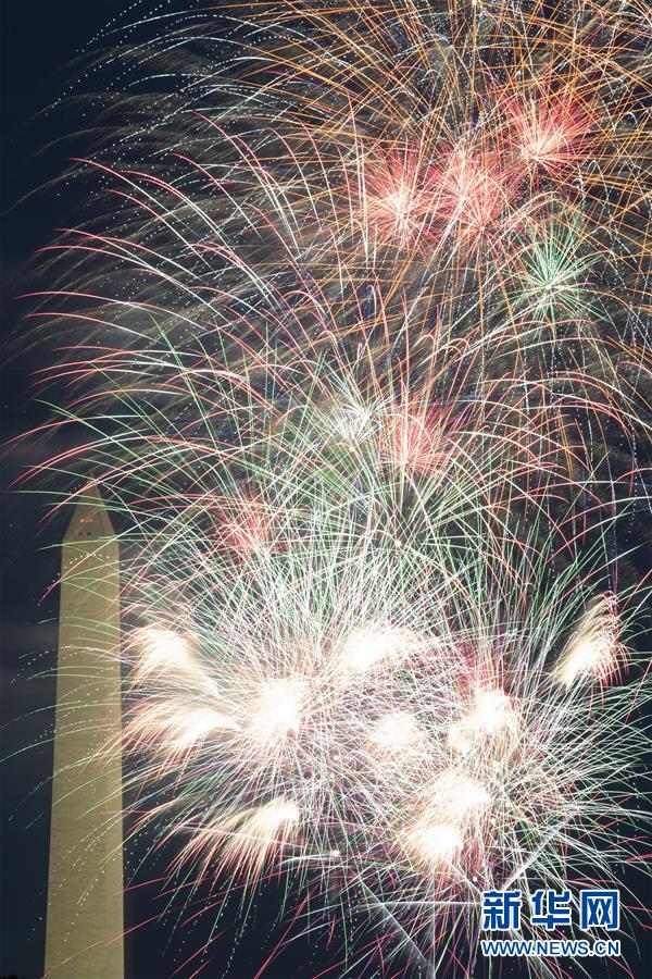 7月4日,焰火在美國華盛頓上空綻放,慶祝美國獨(dú)立日。當(dāng)日是美國獨(dú)立日,美國多地疫情仍面臨嚴(yán)峻形勢(shì)。美國約翰斯·霍普金斯大學(xué)實(shí)時(shí)統(tǒng)計(jì)數(shù)據(jù)顯示,美國累計(jì)新冠確診病例4日已超過280萬例。新華社記者劉杰攝