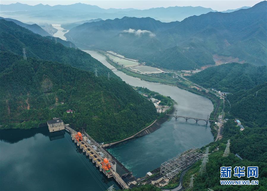 7月6日拍攝的新安江水庫(無人機照片)。受連續強降雨影響,位于浙江建德的新安江水庫水位持續上漲。據浙江省水利廳發布的數據,截至7月6日14時,水庫水位上漲至106.54米,超汛限水位0.04米,且仍在上漲中。為確保水庫防洪安全、合理利用水資源,新安江水庫預計于7月7日開啟泄洪閘泄洪。新華社記者翁忻旸攝