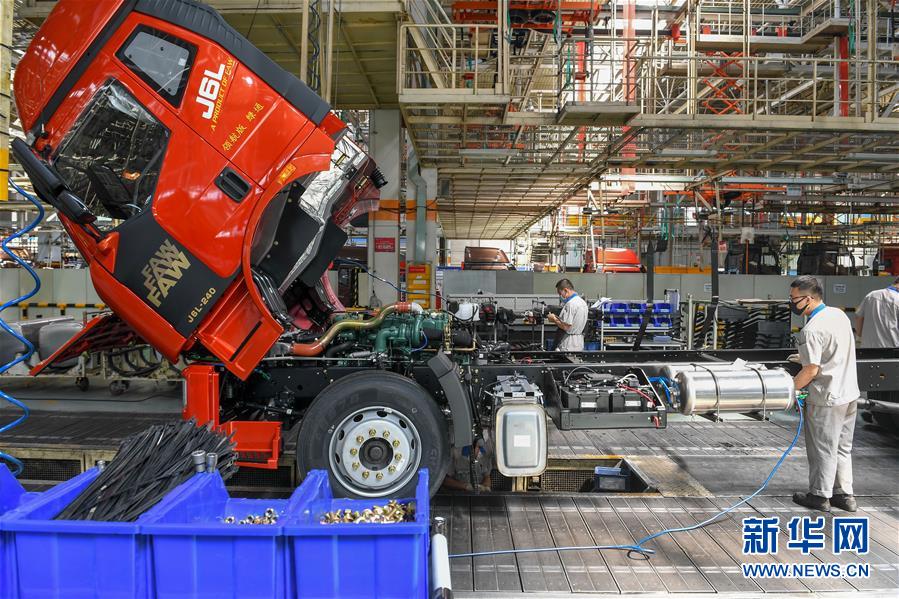 在位于長春市的一汽解放總裝車間,工人在裝配車輛(6月19日攝)。中國第一汽車集團披露,截至6月30日,集團上半年共計生產整車162.23萬輛,同比增長1.5%;銷售整車163.09萬輛,同比增長2.3%。新華社記者張楠攝
