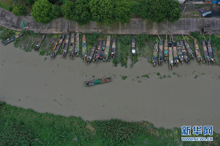 在吳興高新區幻溇村的避風港,停泊了大批漁船(7月7日攝,無人機照片)。近日,位于浙江北部的湖州市遭遇多輪降雨,東部平原河網普遍超警戒水位,水庫山塘高位運行。7月5日12時30分,湖州市人民政府防汛防旱指揮部將防汛應急響應提升至Ⅲ級,要求各地密切監測汛情,切實做好各項防范工作,確保安全度汛。新華社記者黃宗治攝
