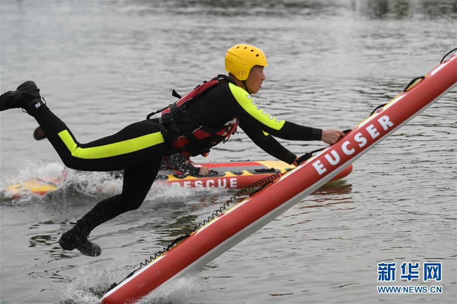 7月7日,吳興區消防救援大隊隊員在演練水上救援,以備搶險。近日,位于浙江北部的湖州市遭遇多輪降雨,東部平原河網普遍超警戒水位,水庫山塘高位運行。7月5日12時30分,湖州市人民政府防汛防旱指揮部將防汛應急響應提升至Ⅲ級,要求各地密切監測汛情,切實做好各項防范工作,確保安全度汛。新華社記者黃宗治攝