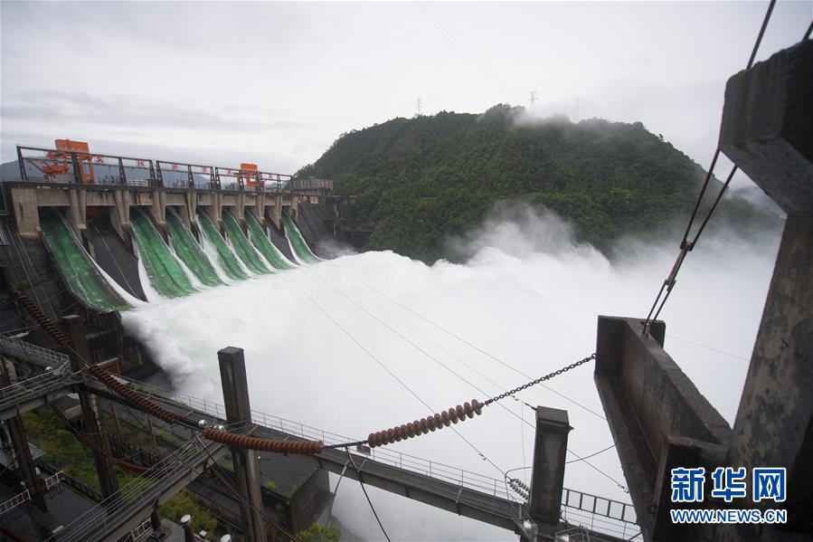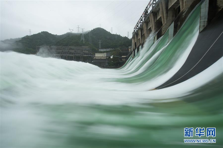 7月7日下午開啟7孔泄洪的新安江水庫。受持續降水影響,浙江新安江水庫水位持續快速上升。繼當日10時開啟3孔、12時開啟5孔泄洪后,新安江水庫于16時增加到7孔泄洪。新安江水庫是華東地區最大的水庫,在錢塘江流域的防洪度汛中起到關鍵作用。新華社記者翁忻旸攝