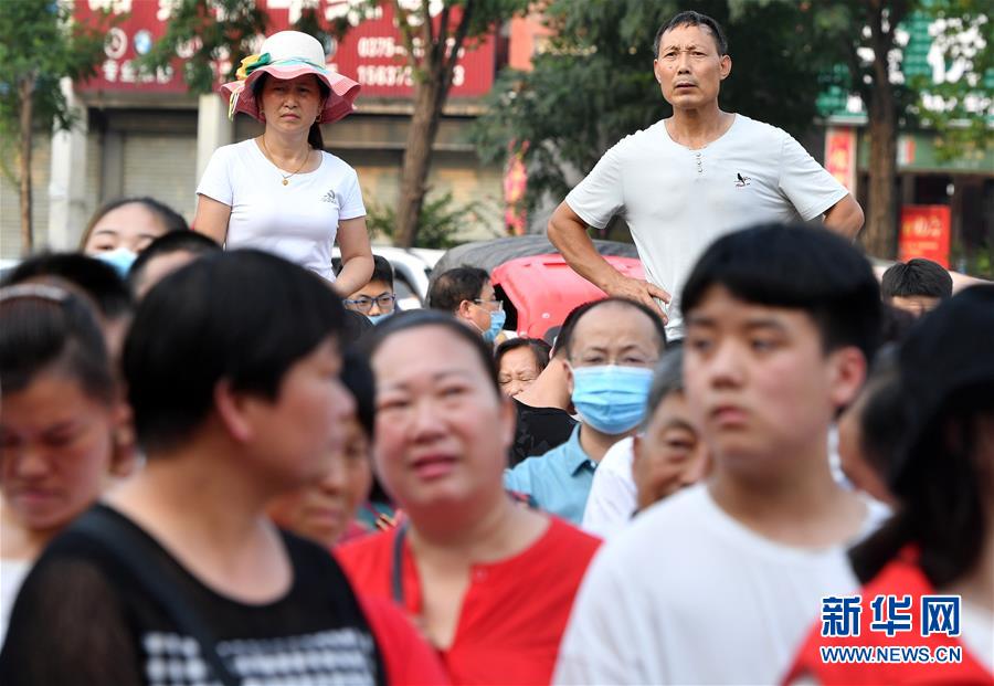 7月8日,在河南省寶豐縣第一高級中學考點,家長在考場外等候考生。當日,全國部分地區2020年高考結束。新華社記者李嘉南攝