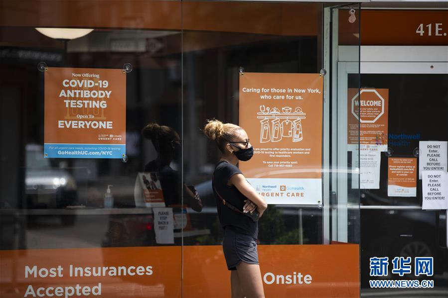 7月8日,一名女子在美國紐約一家診所外等候進行新冠病毒檢測。美國約翰斯·霍普金斯大學(xué)8日發(fā)布的新冠疫情最新統(tǒng)計數(shù)據(jù)顯示,美國累計確診病例超過300萬例。數(shù)據(jù)顯示,截至美國東部時間8日11時34分(北京時間23時34分),美國累計確診病例3016515例,累計死亡病例131594例。新華社記者王迎攝