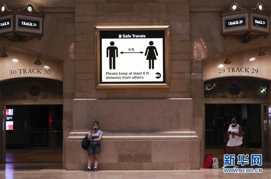 7月8日,人們在美國紐約中央車站內等候乘車。美國約翰斯·霍普金斯大學8日發布的新冠疫情最新統計數據顯示,美國累計確診病例超過300萬例。數據顯示,截至美國東部時間8日11時34分(北京時間23時34分),美國累計確診病例3016515例,累計死亡病例131594例。新華社記者王迎攝