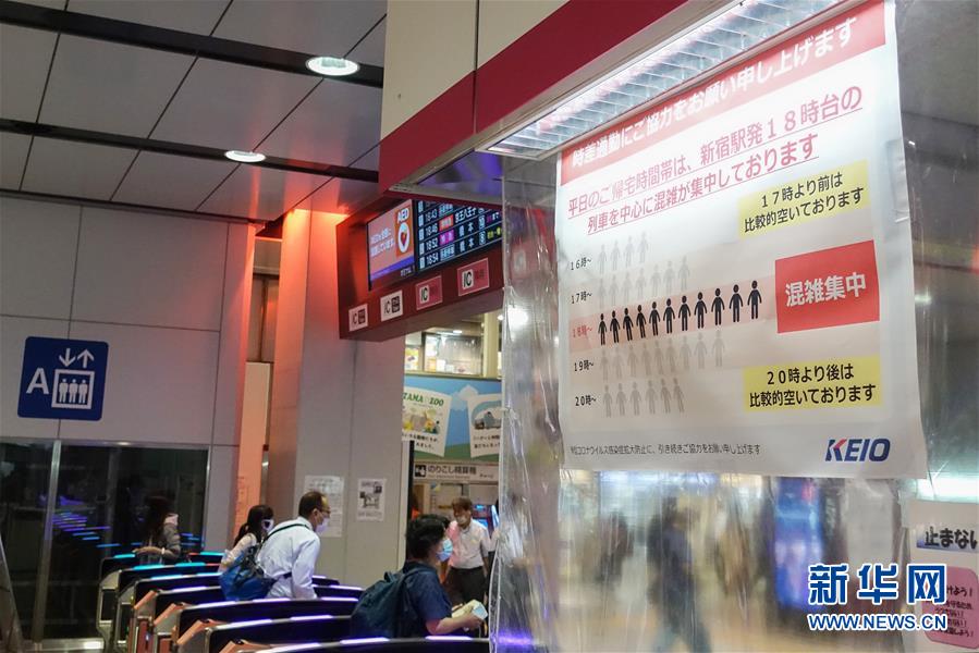 7月9日,日本東京新宿車站的一處入口上貼出告示,顯示該線路的人流量統計,建議乘客錯峰出行。據日本廣播協會電視臺9日統計,截至當地時間9日20時40分,日本當日新增新冠確診病例354例,是5月2日以來該國單日新增確診首次超過300例,累計確診20767例,累計死亡982例。據統計,東京都當天新增確診224例,創當地出現疫情以來單日新增確診新高。新華社記者杜瀟逸攝
