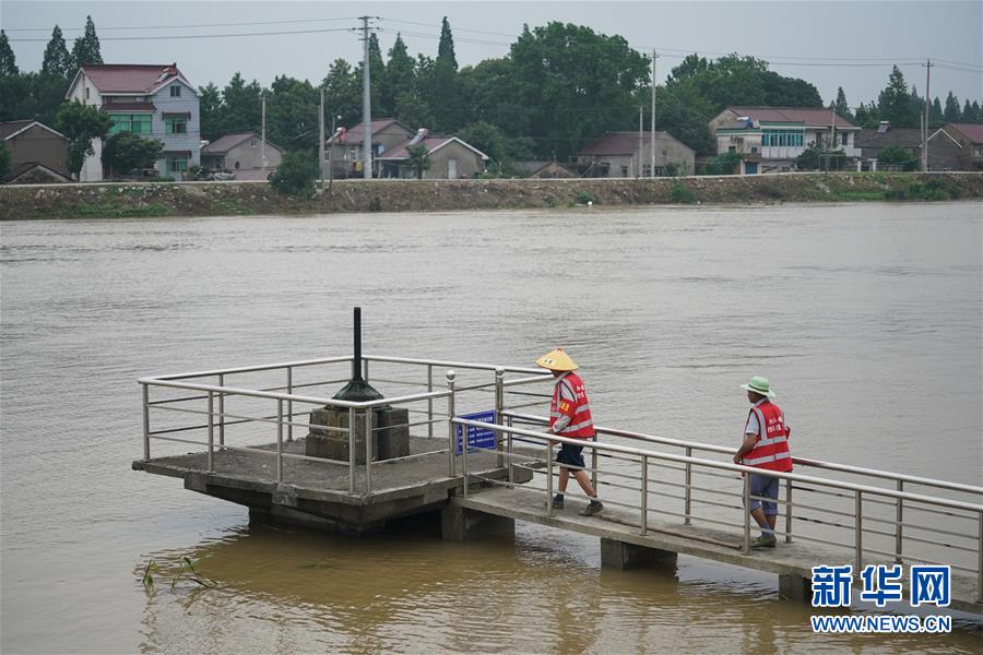 7月9日,巡堤員在檢查高淳區陽江鎮永豐圩涵閘。新華社記者季春鵬攝