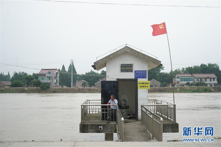 7月9日,在高淳區陽江鎮永豐圩,巡堤員在值守點值守。新華社記者季春鵬攝