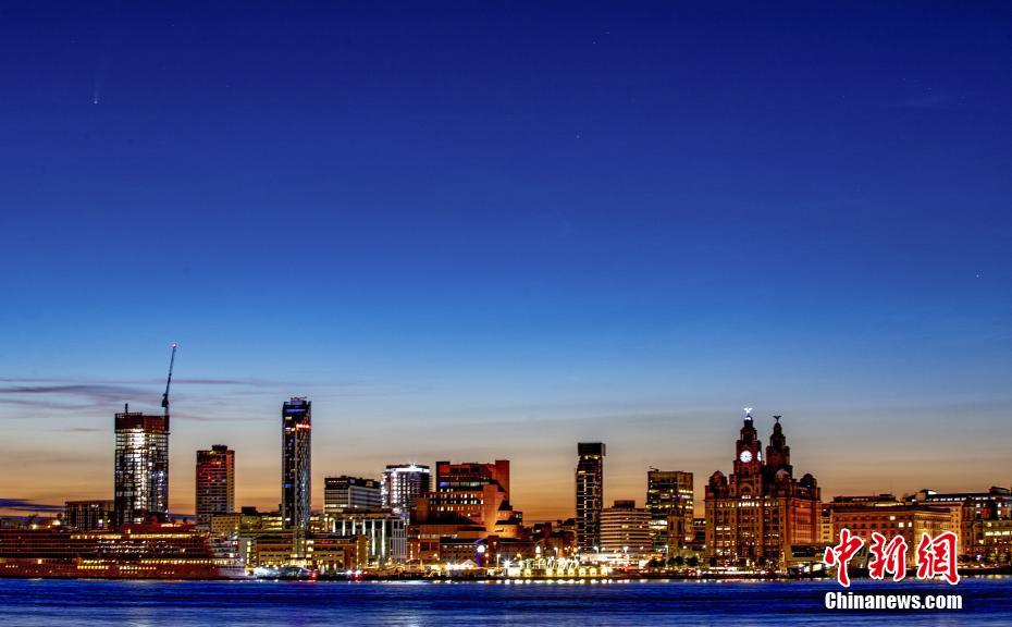 當(dāng)?shù)貢r(shí)間7月12日,英國(guó)利物浦,清晨時(shí)分,NEOWISE彗星出現(xiàn)在空中。圖片來(lái)源:視覺中國(guó)