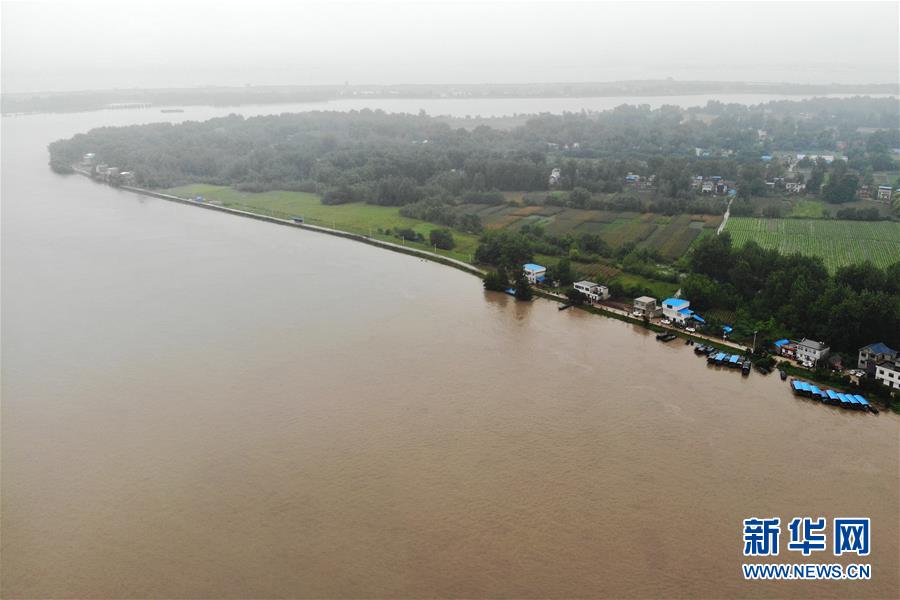 這是7月16日拍攝的鐵銅鄉江心洲(無人機照片)。受長江持續高水位影響,安徽省樅陽縣的鐵銅鄉江心洲已于近日將江心洲上的居民轉移安置,而包括搶險隊員、鄉鎮干部、水利工程師等在內的近300人“留守”在江心洲上巡堤查險,守護家園。鐵銅鄉位于長江江心洲上,有4個行政村52個村民組,耕地面積12000多畝。新華社記者黃博涵攝
