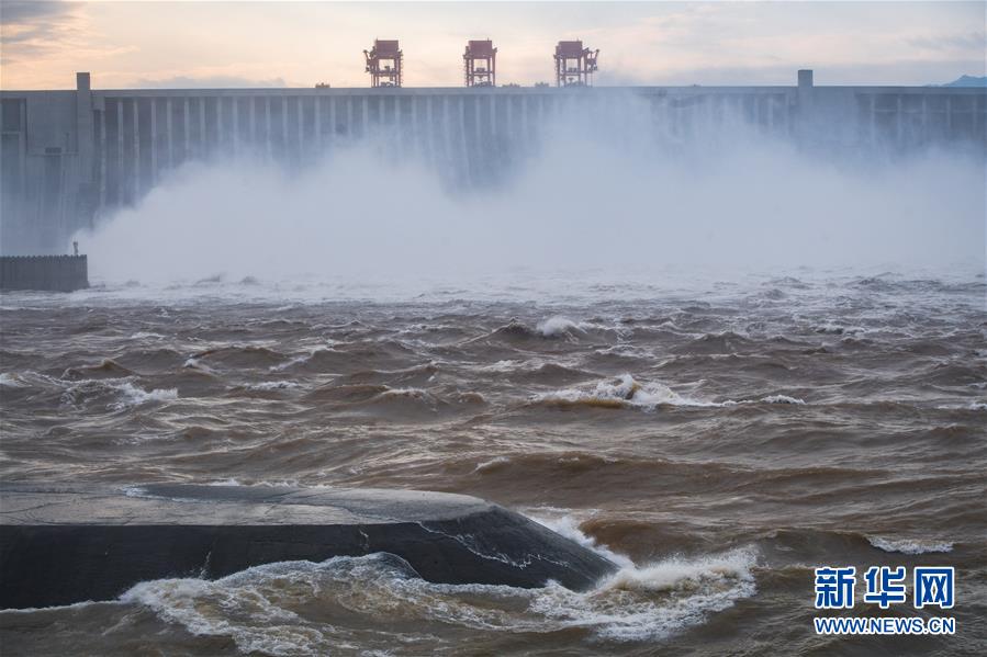 7月19日,三峽樞紐開啟泄洪深孔泄洪。19日20時,三峽水庫入庫流量4.6萬立方米/秒,較本輪洪水的峰值6.1萬立方米/秒下降了1.5萬立方米/秒。“長江2020年第2號洪水”平穩通過三峽大壩。新華社記者肖藝九攝