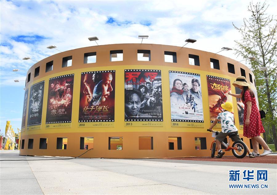 2019年8月25日,一對母子在電影海報展區參觀。8月24日,“我和我的祖國”慶祝新中國成立70周年國產優秀電影海報展在青島西海岸新區啟動,百余幅電影海報與公眾見面。新華社記者李紫恒攝