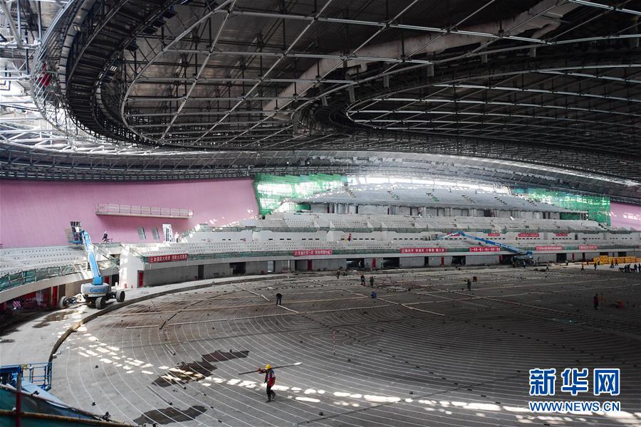 7月22日,工人在國家速滑館內(nèi)施工。新華社記者張晨霖?cái)z
