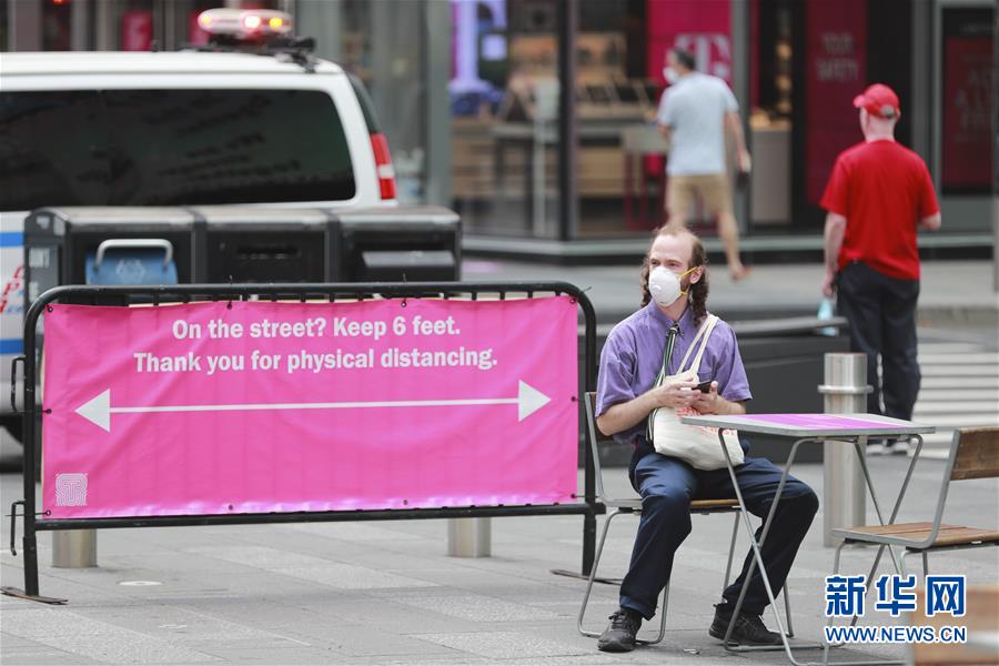 7月23日,一名男子在美國紐約時報廣場小憩。美國約翰斯·霍普金斯大學23日發布的新冠疫情最新統計數據顯示,美國累計確診病例超過400萬例。數據顯示,截至美國東部時間23日15時34分(北京時間24日3時34分),美國累計確診病例4007859例,累計死亡病例143846例。新華社記者王迎攝