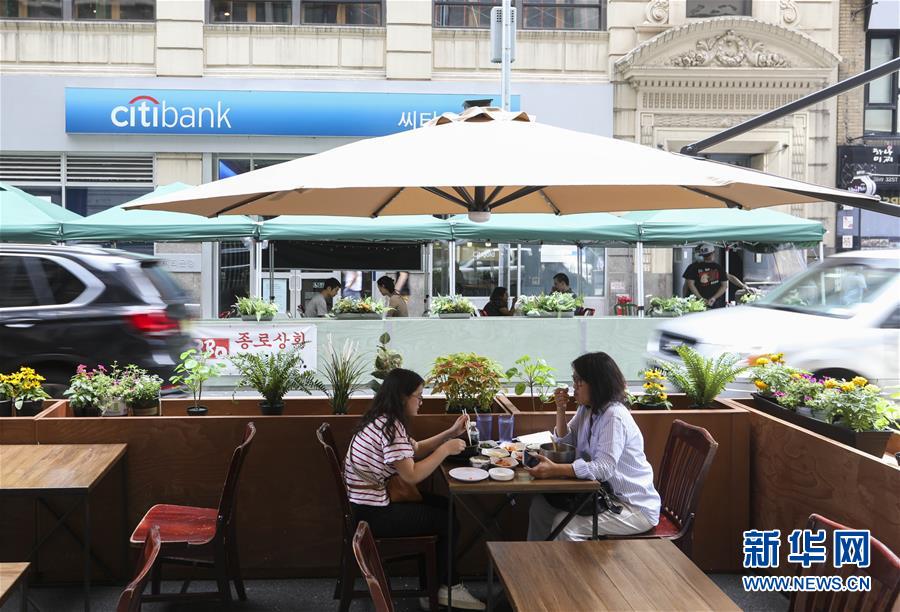7月23日,在美國紐約,人們在戶外就餐區用餐。美國約翰斯·霍普金斯大學23日發布的新冠疫情最新統計數據顯示,美國累計確診病例超過400萬例。數據顯示,截至美國東部時間23日15時34分(北京時間24日3時34分),美國累計確診病例4007859例,累計死亡病例143846例。新華社記者王迎攝