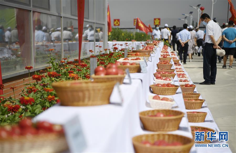 7月27日,參會者在展覽現場觀看由不同種子培育出的西紅柿產品。新華社記者 王鵬 攝