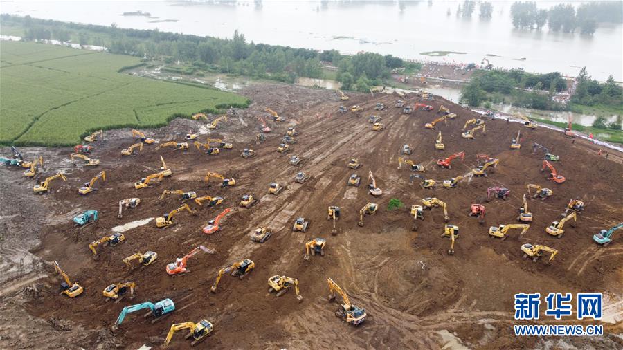 7月26日上午,位于安徽省潁上縣的姜唐湖蓄洪區(qū)戴家湖一處涵閘閘門破損,在大堤背后形成直徑約10米的漩渦,危及附近群眾的生命安全。險情發(fā)生后,當地調配大量機械設備現場作業(yè),在大堤背水側修筑一道長600米的臨時圩堤,控制險情。
