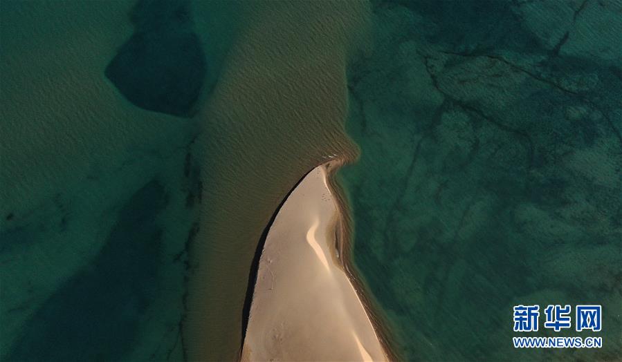 這是青海湖沙島風光(7月28日攝,無人機照片)。盛夏傍晚,位于青海湖東北部的沙島,島內湖泊星羅棋布,沙丘連綿起伏,風景別致。金沙與湖水掩映,在陽光的勾勒下形成一幅美麗的畫卷。新華社記者張宏祥攝