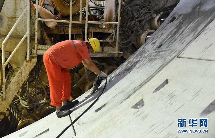 7月29日,“萬里黃河第一隧”——濟南黃河隧道工程施工人員在施工作業。新華社記者王凱攝