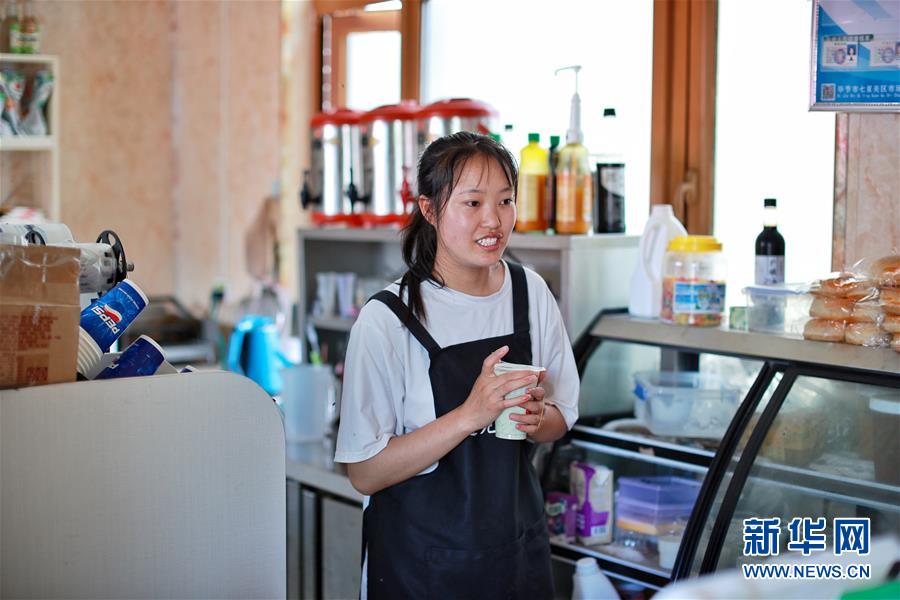 劉林在柏楊林易地扶貧搬遷安置點的一家奶茶店打工,她一個月可以掙2000多元(8月3日攝)。貴州省畢節市七星關區柏楊林易地扶貧搬遷安置點是畢節市最大的易地扶貧搬遷安置點,總面積約1.1平方公里,從2017年開始至今,共有34個鄉鎮6372戶29001人安置到位。如今,安置點內教育、醫療、就業扶貧車間、長幼日間托養照料中心等設施齊全,搬遷群眾在這里過上了安居樂業的幸福生活。新華社記者劉續攝