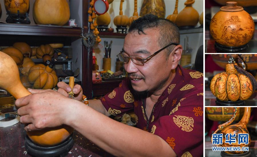 8月5日,侯景偉在葫蘆上進行創(chuàng)作。今年55歲的吉林四平人侯景偉自幼與家人學習雕刻、烙畫藝術。經(jīng)過多年潛心研究,他將浮雕和烙畫工藝相結合,通過拋光、起稿、雕刻、烙燙、套色等十余道工藝,制作展現(xiàn)傳統(tǒng)文化、民俗故事的葫蘆工藝品。2020年,侯景偉被評為四平市非物質文化遺產(chǎn)項目侯氏葫蘆雕刻烙畫代表性傳承人。他說:“希望有更多人加入到非遺傳承隊伍中,讓小葫蘆‘講’出更多民俗故事。”新華社記者張楠攝