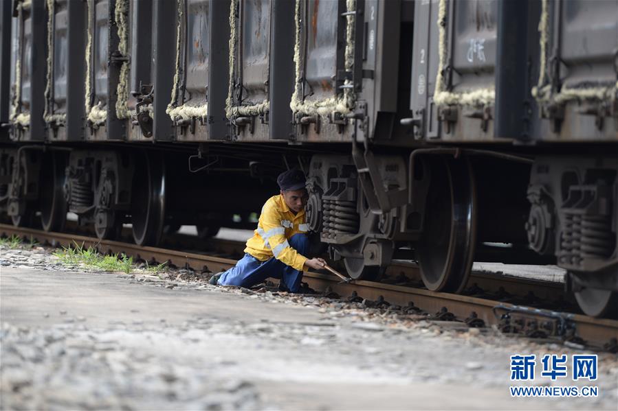 8月6日,合肥運用車間列車檢修員對車輛進行檢修。合肥市近日持續高溫天氣。在中國鐵路上海局集團有限公司杭州北車輛段合肥運用車間,386名列車檢修工人頭頂烈日堅守崗位,確保暑運列車的安全運行。據了解,暑運期間,合肥運用車間日均檢修列車105列,檢修車廂5058節。新華社記者黃博涵攝