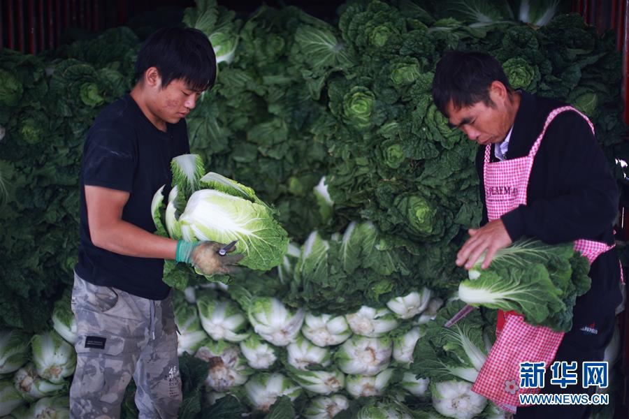 8月6日,工作人員在威寧縣貴州江楠現代農業物流園內處理蔬菜。新華社記者劉續攝