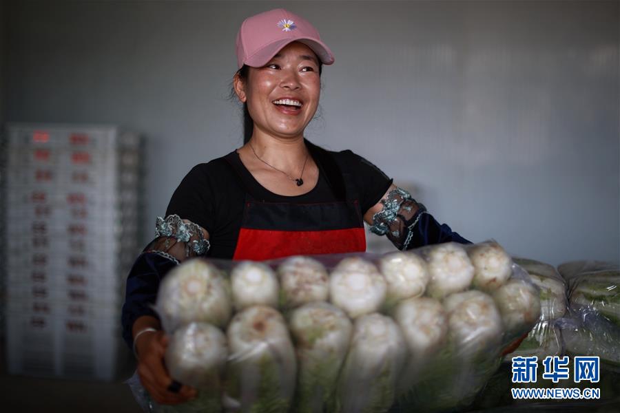 8月6日,工作人員在威寧縣貴州江楠現代農業物流園內搬運蔬菜。新華社記者劉續攝