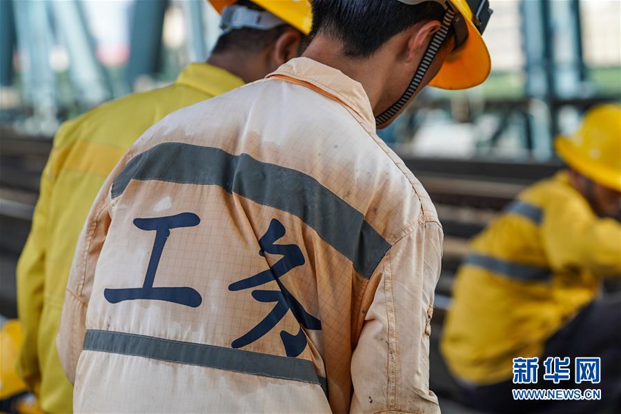 8月6日,橋隧工的工作服在作業時被汗水浸濕。新華社記者李博攝
