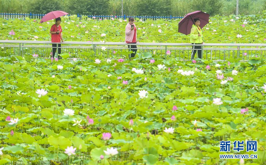 8月6日,游客在河北省永清縣里瀾城鎮(zhèn)金華湖觀賞荷花。夏日時(shí)節(jié),河北省永清縣里瀾城鎮(zhèn)金華湖荷塘的荷花爭(zhēng)相開(kāi)放,吸引市民和游客前來(lái)游玩觀賞。新華社記者李曉果攝