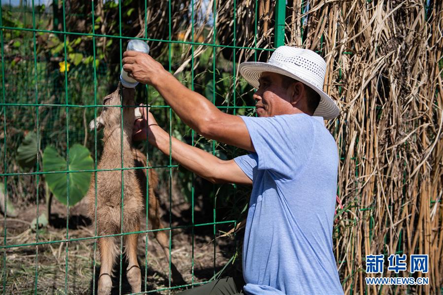 8月7日,在東洞庭湖麋鹿和鳥類救治避難中心,飼養員李衛東給被救助的麋鹿喂奶。位于湖南省岳陽市的東洞庭湖麋鹿和鳥類救治避難中心成立于2016年9月,占地400余畝,中心自建成后就承擔起東洞庭湖區域全部麋鹿的救援、醫治、康復和喂養任務。目前該中心共有14只麋鹿正在接受救助。新華社記者陳思汗攝