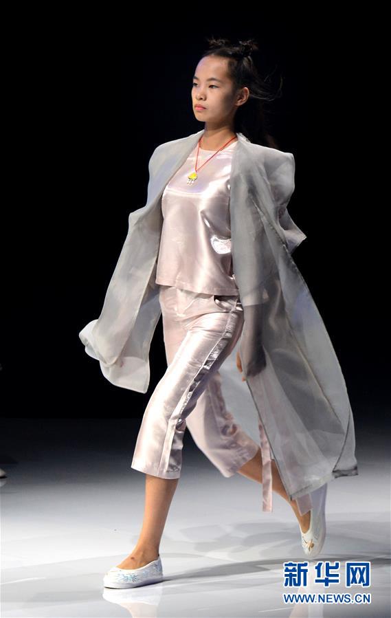 8月7日,小模特在T臺上展示童裝。當日,2020中國(河南)國際大學生時裝周舉行童裝設計專場展示。8月5日至7日,2020中國(河南)國際大學生時裝周在河南省新密市豫發密蘭小鎮舉行。新華社發(海雨涵攝)