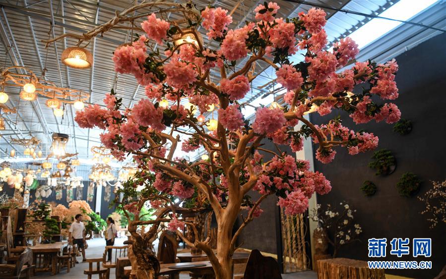 這是8月7日在永??h永安鄉根雕工藝品就業扶貧車間拍攝的根雕工藝品。2017年以來,廣西桂林市永??h永安鄉通過幫扶返鄉青年創業的方式,建立起根雕工藝品就業扶貧車間,組織貧困群眾進車間務工學藝,把當地豐富的朽木和柑橘樹根枝資源利用起來,加工成盆景、茶桌、吊燈等根雕工藝品,不僅幫助貧困群眾在家門口掌握一技之長,還讓他們在脫貧摘帽后實現穩定增收。新華社記者張愛林攝